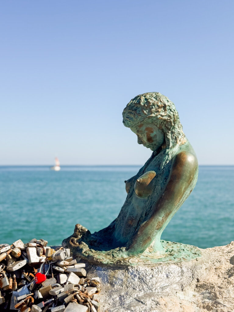 È qui, nel punto più estremo del molo di Levante che attende Penelope, scultura simbolo della città.